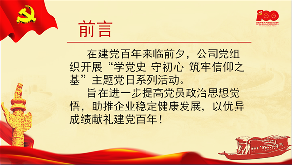 我公司黨總支《學(xué)黨史 守初心 筑牢信仰之基》主題黨日活動(dòng)的內(nèi)容,既符合規(guī)定的程序要求,又結(jié)合本企業(yè)實(shí)際隔入了以“微型黨課”撰寫(xiě)和交流、黨建共建等提升教育特色、以“紅船旁的黨員承諾卡”等形式增強(qiáng)管理特色等內(nèi)容,通過(guò)活動(dòng)切實(shí)激發(fā)了黨員同志們帶頭發(fā)揮先鋒作用。